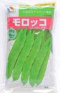 開花後12~15日で、タネの部分が膨らむ前の若莢を収穫します。平莢種の「モロッコ」はタネの部分が少し膨らんだころに収穫しても食味は変わりません。